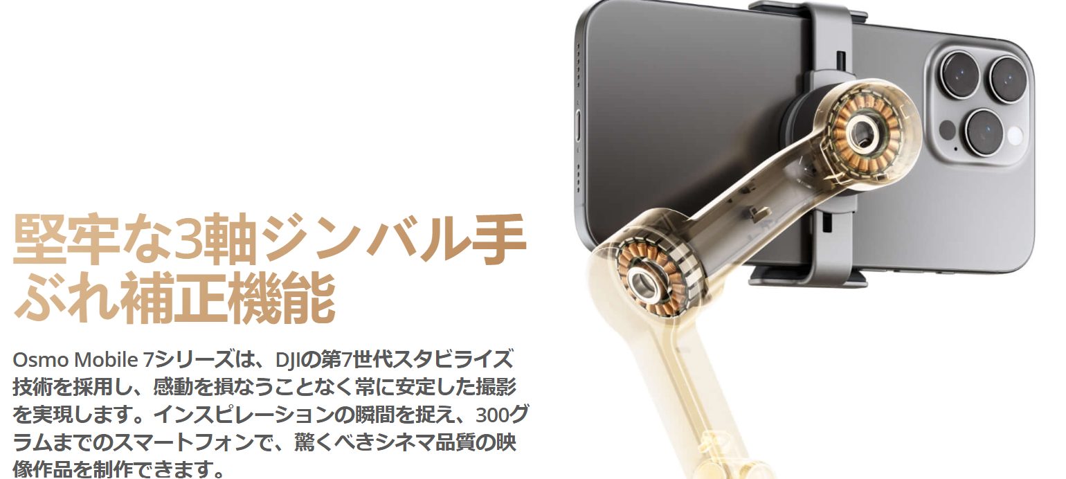 | 互換性 | Osmo Mobile 7P 対応(標準) Osmo Mobile 7 |