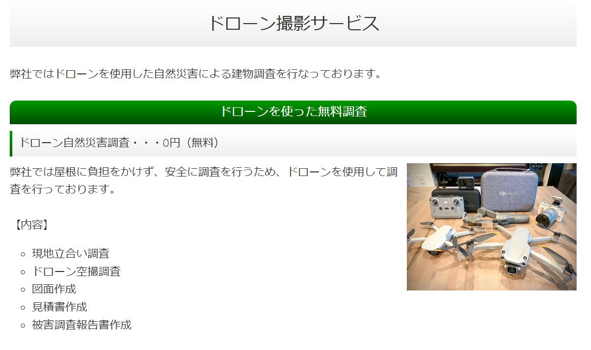 ドローン自然災害調査は無料です。