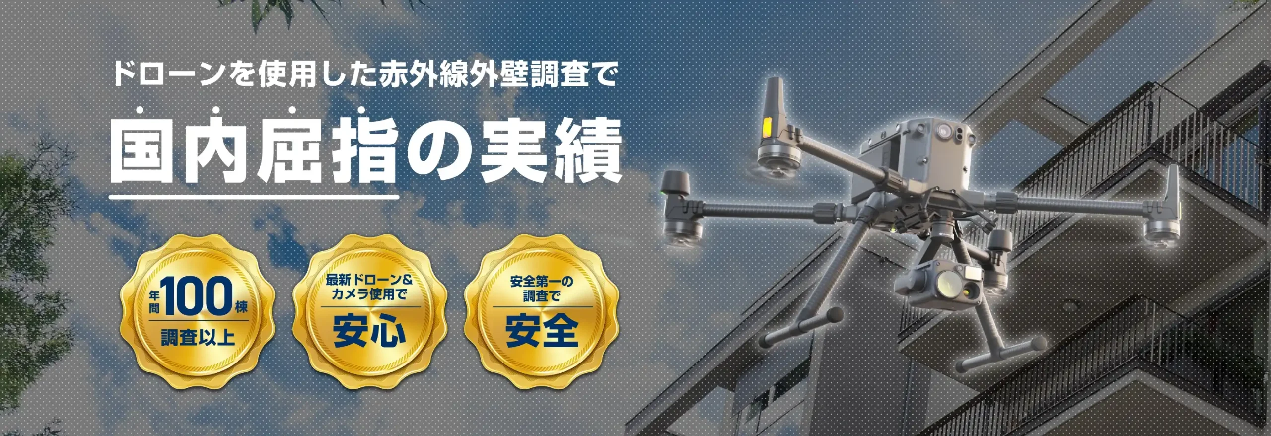 最新のハイスペックドローンとカメラを使用して、赤外線外壁調査を行っています。