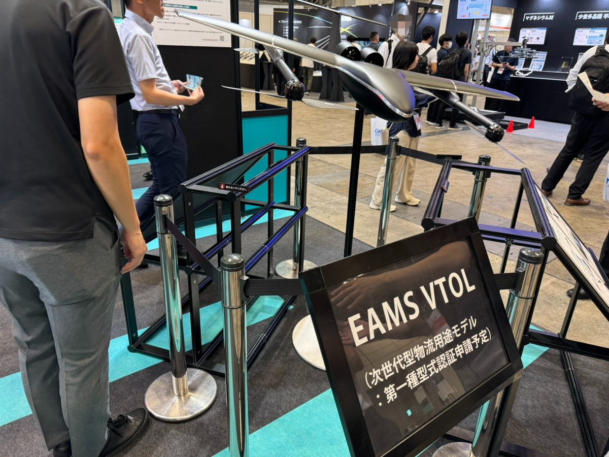 こちらは新型VTOL機「EAMS VTOL」!こちらの機体はジャパンドローンで初公開だそうです!