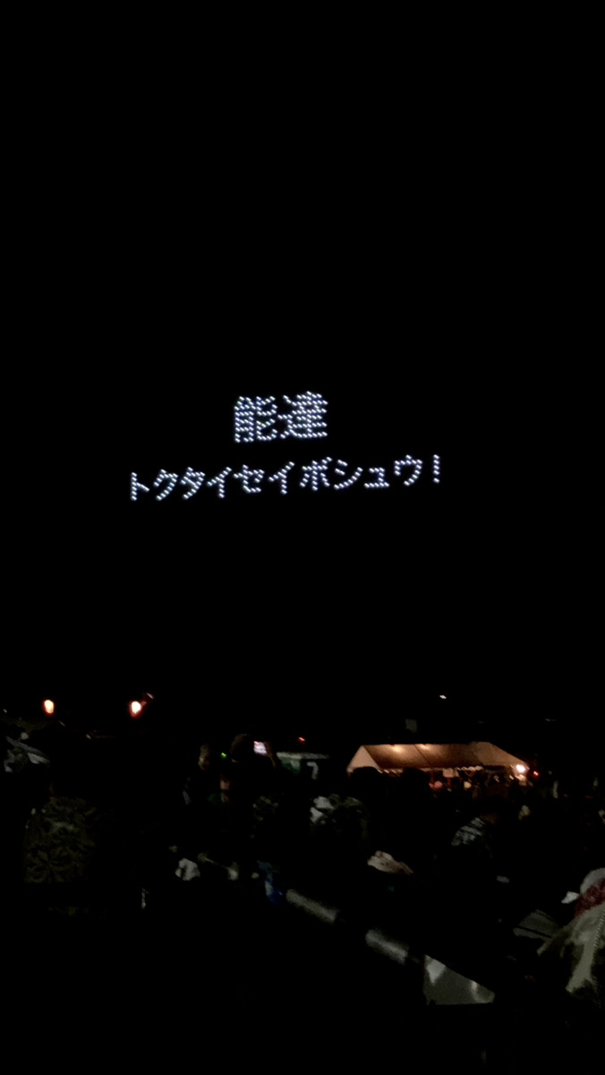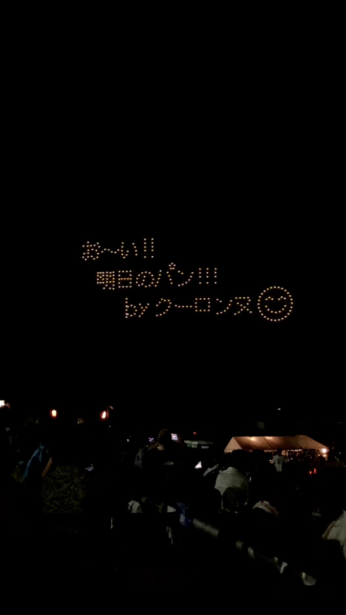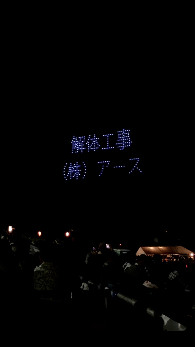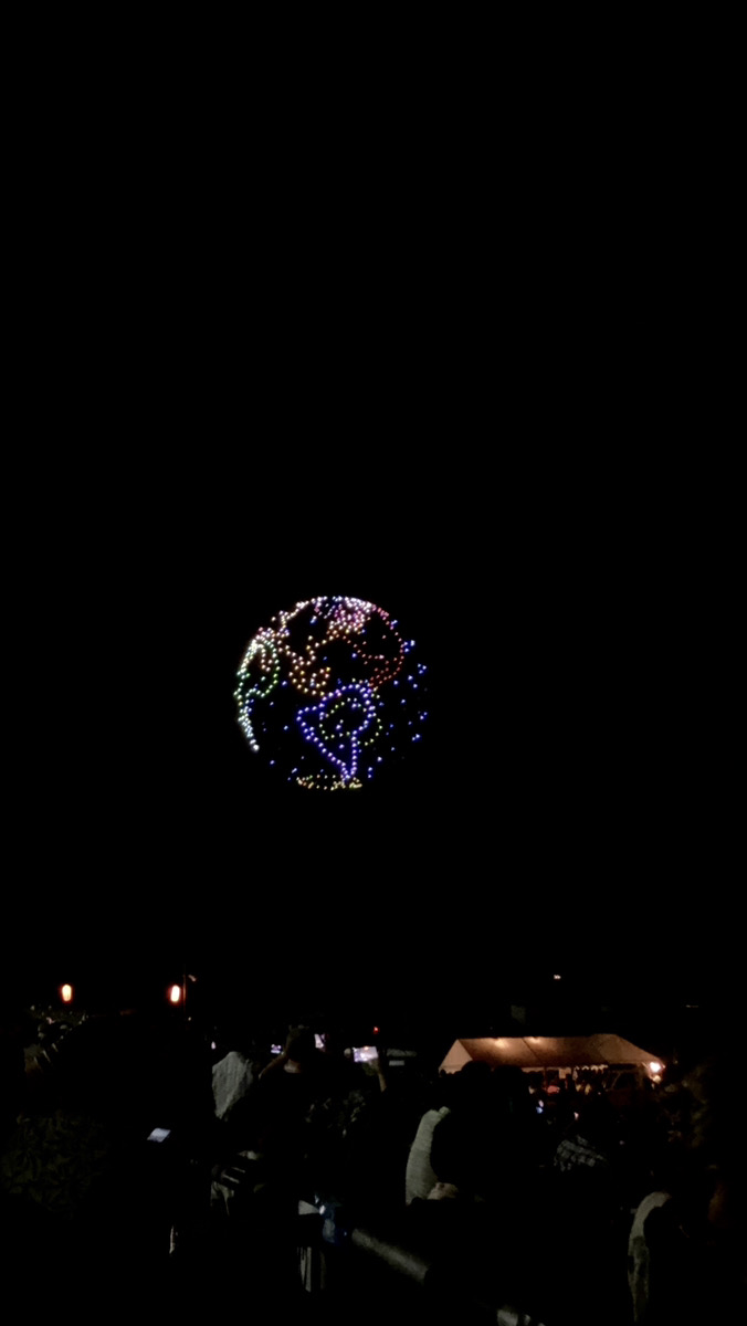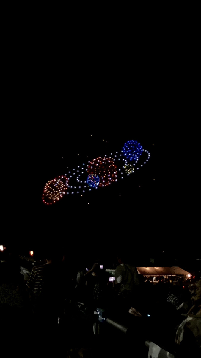 ドローンショーの最後にはスポンサーの紹介が!周りから地元の知ってる会社がスポンサーなんだー!と声も上がっていました。