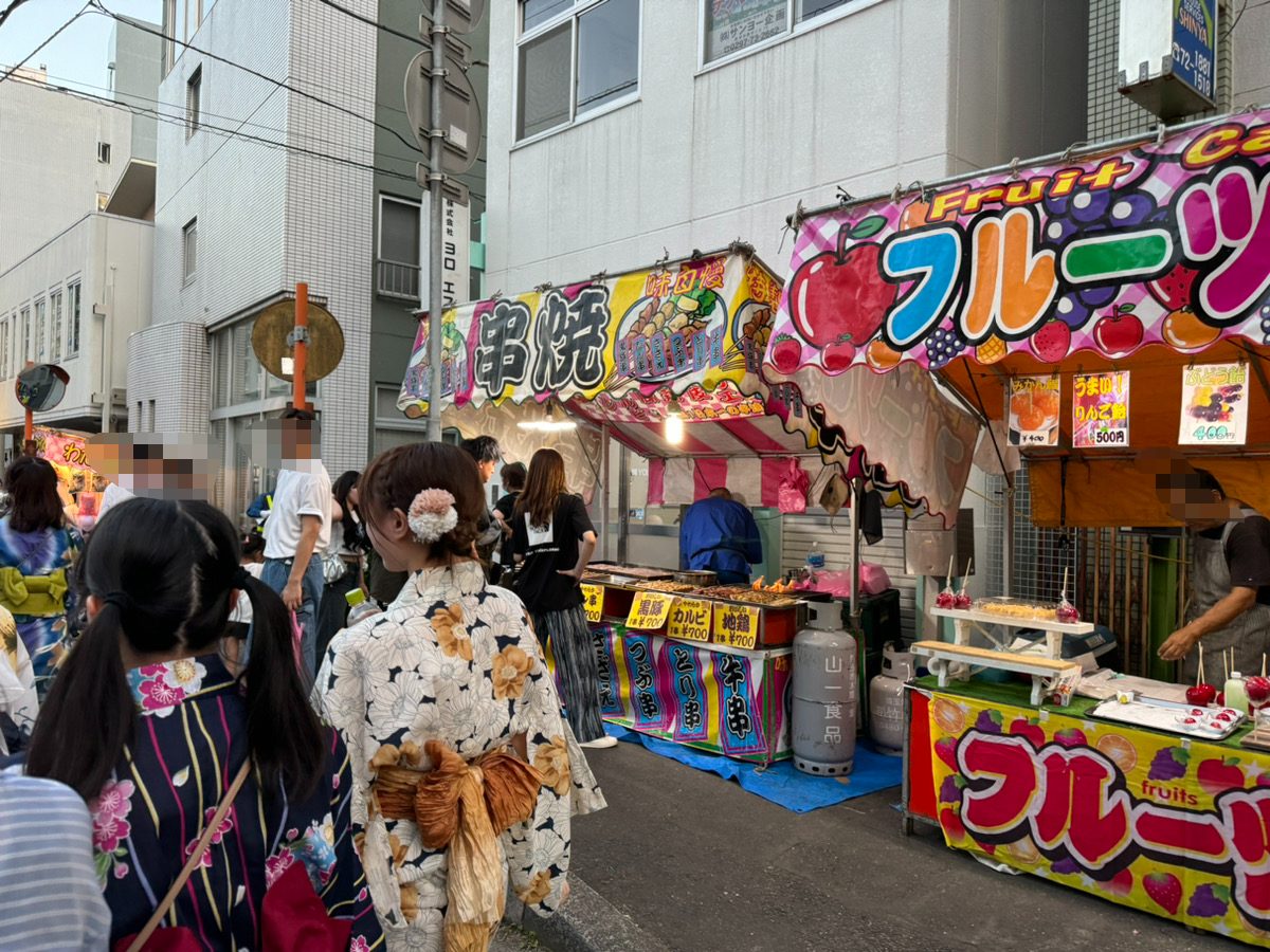 花火大会会場の取手緑地運動公園に向かう道中では、徐々に会場に近づくにつれて出店もあり、お祭りムードに。