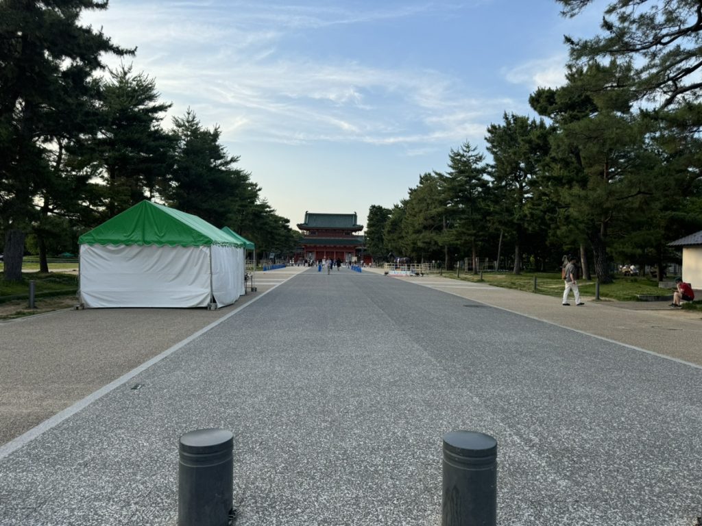 一般公開の13日~15日は、どうなるか不明ですが、もしも同じ位置でドローンが飛ぶのなら平安神宮の中心より向かって右側でドローンショーが開催されるので、しっかり見たい&撮影したい方は位置取りを考えてみると良いかもです!